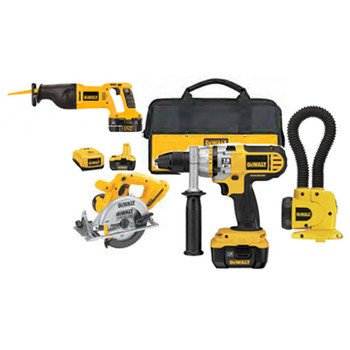 Includes 18 Volt Cordless XRP Li-lon 4-Tool Combo Kit - DCK470L, 18V Cordless XRP Hammer Drill / Driver - DC927KL-XE, Circular Saw - DC390K-XE, Reciprocating Saw - DC385K-XE, Multi Chemistry Charger - DC9310-XE, (2) Nano XRP Lithium Ion Battery Packs - DC9180-XE, Contractor Bag